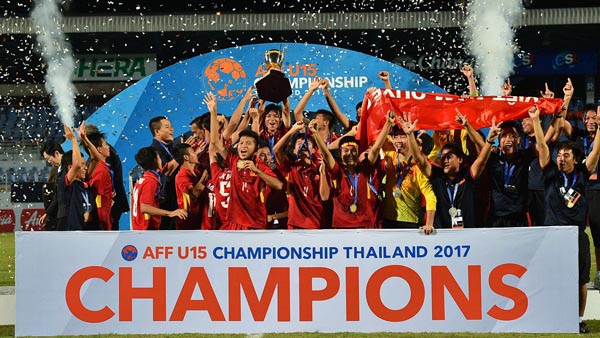 After holding hosts Thailand to a 0-0 draw after 90 official minutes of the final of the 2017 ASEAN Football Federation (AFF) U-15 Championships, Vietnam defeated their strong rivals 4-2 in a dramatic penalty shootout to win the title of the tournament on July 22.
