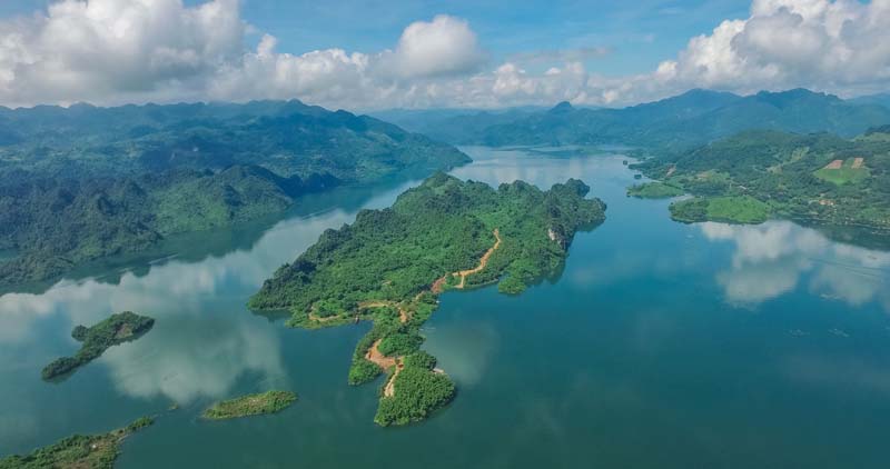 (HBO) – Hoa Binh Lake is the largest artificial lake in Southeast Asia. The lake has the length of 70 km and spreads over 17 communes of five districts and city. In particular, there are 47 islands in the inside of lake, including 11 limestone islands with the area of 116 hectares and 36 mountainous islands with the area of nearly 160 hectares. Hoa Binh Lake is a perfect combination of wild and passionate natures. The inside of lake consists of many small islands which contain potentials and advantages of developing types of tourism such as cultural, historical, ecological and spiritual tourisms.